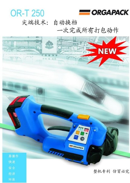 ORT250采用充电形式,携带方便,打包不受场地限制,外型美观,符合人机工程学原理,电池容量大,一次充电最高可打包400次,广泛应用于电子,木业,建材,钢铁,造纸等行业。