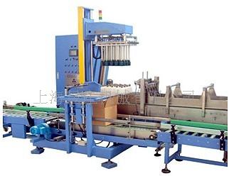 <a href="javascript:void(0);" onclick="HrefJs(this.id)" id="http://www.shgwpack.com.cn/">全自动装箱机</a>是一种智能性全自动装箱机,采用高速分配装置包装各种容器,包装塑料扁瓶、圆瓶、不规则形瓶,各种大小玻璃瓶,圆瓶、椭圆形瓶、方形罐及纸罐等,<a href="javascript:void(0);" onclick="HrefJs(this.id)" id="http://www.shgwpack.com.cn/">全自动装箱机</a>也适用于带隔板的包装箱。由瓶夹(内置橡胶,以防损伤瓶体)夹住瓶体(每次2箱),放入打开的纸箱当中,当抓头抬起时,将纸箱排出,送至封箱机,<a href="javascript:void(0);" onclick="HrefJs(this.id)" id="http://www.shgwpack.com.cn/">全自动装箱机</a>采用P.L.C + 触摸显示屏控制。设有缺瓶报警停机,无瓶不装箱安全装置。本流水线大大方便操作、管理、减少生产人员和劳动强度,是自动化规模生产必不可少的设备。