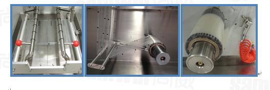 安全防护门上装有安全门开关,开门或门未关妥时,安全门开关动作,机器将停止运转或不能开启,以保障人机安全。