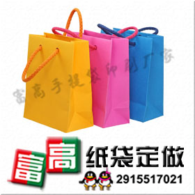 手提纸袋的促销优势:手提纸袋以其耐用、印刷精美、环保、使用率高、广告范围广而成为备受广大商家推崇的广告促销首选礼品纸袋。可谓纸袋到哪商家的广告就做到哪。手提纸袋的材料和生产工艺:纸袋的品种很多、纸的材料品种多样、款式也很多。纸袋一般采用白卡纸,白板纸,铜板纸,牛皮纸制造,还有少量是特种纸制造,按照袋边,底部及封底方式不同,有开口缝底袋、开口粘合角底袋、阀式缝合袋、阀式扁平六角形端底粘合袋等四种纸袋型式。因为开口款式因素,所以出现了手提纸袋这个名字,有些纸袋是有手挽的.使用四层以上牛皮纸制袋,根据被包装物的性能,采用不同的纸袋型式。专业手提纸袋生产技术:我公司巨资引进各类纸袋印刷设备,从纸袋设计、纸袋生产、纸袋包装、到纸袋运输为广大纸袋促销商家提供一条龙服务。富高专业生产手提纸袋、纸袋印刷、手提礼品纸袋、公司配备专业纸袋印刷机,纸袋封口机,纸袋穿绳机打孔机,纸袋全自动包装机。可根据客户要求定做各类规格不同材质的纸袋,手提纸袋,礼品袋的印刷生产。我们用最低廉的价格做最好的产品,有意者可以通过QQ与我细谈,或者联系我手机。