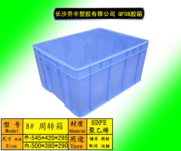长沙塑料周转箱、塑料食品箱、塑料物流箱分背挂式插接式多功能物料盒三种标准,还有与背挂式零件盒配合使用的物料整理架和工具箱。零件盒、工具箱采用100%抗冲击改性PP为原料注塑加工而成,机械强好、重量轻、使用寿命长,操作方便。1、80摄氏度以下,可耐普通酸、碱和任何溶剂2,吸水率低于0.01%,防潮性好。3、不宜长期受阳光直射。4、有效工作温度为-30摄氏度至80摄氏度,不可离火源太近。5、标准色为蓝、红、黄,并可根据用户需要改变颜色。