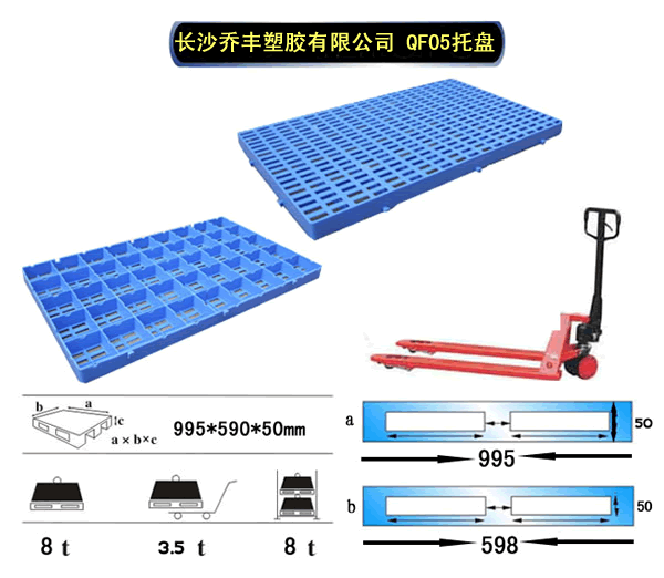 随着对生产条件、仓储条件、过程控制、品质管理的要求不断提高,由于木托盘在卫生状况及规范生产上无法克服的局限性,塑料托盘开始出现,并很快占据了一席之地。目前已广泛应用于机械、电子、食品、医药、服装等行业。与木质托盘相比,塑料托盘整体性好,卫生洁净,易于冲洗消毒,在使用中具有质轻、无钉刺、耐酸碱、不霉变等特点,其使用寿命是木托盘的5—7倍。