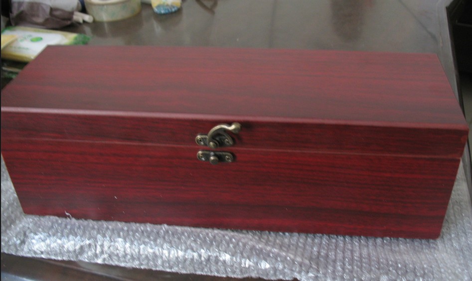 特 点: 仿红木的密度板酒盒,里面带4个配件.红色绸布下面有泡沫,可以很好地保护红酒瓶,减少外力的冲击。红酒礼品盒/仿红木红酒盒/红酒包装盒/木制红酒盒