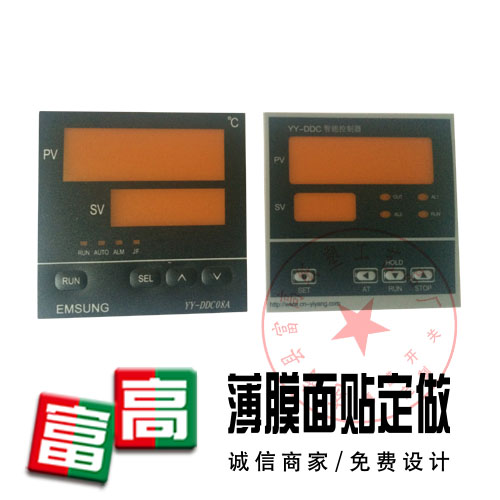 PVC面板标贴是聚碳酸脂(PC)、聚脂薄膜(PET)、聚乙稀(PVC)作为表面装饰并设计有各种图案的装饰面板。可广泛用于家用电子电器、仪器仪表、机械、电子的开关面板标贴牌等……,该产品不仅具有防水、防尘耐摩擦、不褪色、易于美化装饰安装特点外,还可直接在面板表面用水洗涤污垢,图案不受影响。