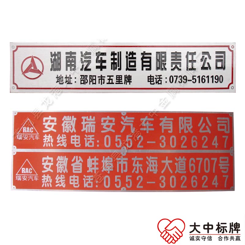 应用:应用于各类设备上作为金属商标、铭牌,如汽车铭牌、机床标牌。