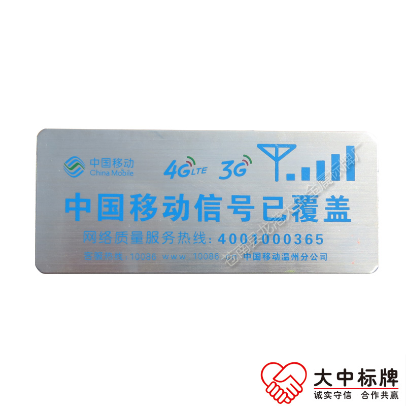 联定做电梯移动信号已覆盖印刷不锈钢标牌通宽带线路钢铁标牌