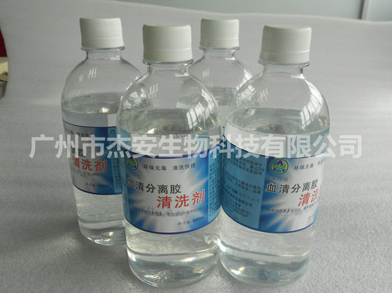 血清分离胶清洗剂是杰安生物针对血清分离胶难清洗的特点而专门研发的清洗剂,是一种无色透明、无刺激气味的低粘稠度液体,能快速清除血清分离胶。该清洗剂具有以下特点: