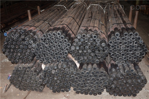地质钻杆是一种采用合金钢管经过两端镦头加厚,车削小螺距锥度螺纹,与锁接头联接,用于地质勘探领域,传递钻机扭矩给井底钻头,并负责传输钻井液的钻探工具。常规的地质钻杆分为内加厚钻杆和外加厚钻杆两大类,通常Φ60及以下直径为内加厚,Φ60及以上直径为外加厚。钻杆的质量好坏主要取决于选材及杆端螺纹强度,好的材料不易疲劳弯曲或折断,端部镦头后组织致密则能有效提高其机械性能,螺纹车削的精密又保证了与锁接头联接的强度。