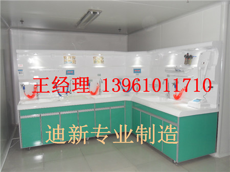 倾斜式操作面板平面设计,从光学、人体工程学及美学方面考虑,有效的缓解了操作时手部的疲劳与不适,从视觉效果上有效的避免了眩光对操作人员眼睛造成的刺激,再加之灯箱、操作面板安装平面与背板为一次性吸塑成型,除了与台面连接的水平缝外无多余的水平接缝——整体性能好,不藏污纳垢,防水防潮,防污染,清洁保养方便快捷、安全无忧。与槽面的尺寸相一致,搬迁、重组、升级方便灵活