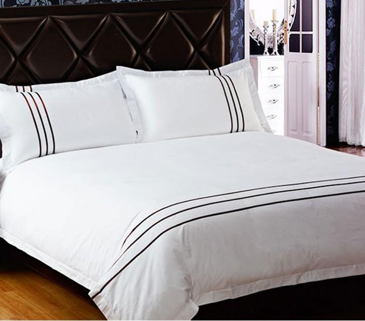 专业生产酒店宾馆用白色缎条床单被罩枕套