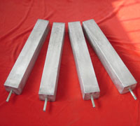 供应镁合金牺牲阳极 适用于淡水中的输油、输气、供排水管线、地下电缆、化工、通讯、 港湾、船舶、水库闸门等工程的防腐保护。