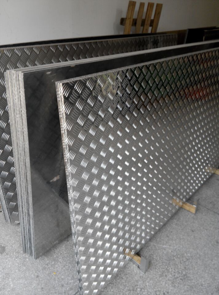2、铝猛合金花纹板材:以3003为主要原料加工而成,此种铝板又称为防锈铝板,强度稍微高于普通铝合金花纹板材,具有一定的防锈性能,但是硬度和耐腐蚀性达不到5000系列的花纹板材,所以该产品应用在要求不严格的防锈方面,比如货车车型,冷库地板方面。