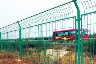 机场护栏网又称作“Y型安全防御护网”,是由V型支架立柱,加强型焊接片网,安全防盗连接件和热镀锌刀片刺笼组成强度和安全防御性级别很高。现被广泛应用在机场,军事基地等高安全场所。注:如果在机场护栏网顶部加装刀片刺丝、刀片刺绳后又很好的增强了安全防护性能。采用电镀、热镀、喷塑、浸塑等防腐形式,具有很好的抗老化、抗晒、耐候等特点。其产品造型美观、花色多样,既起到围栏作用,又起到美化作用。由于具有安全性高、防攀爬能力好,网片连接方式采用特制SBS紧扣件,有效防止人为的破坏性拆卸,横向四道折弯加强筋,使网面强度显著增加。