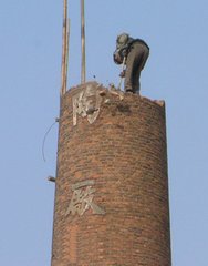 三、高空维修工程:烟囱装饰美化、烟囱加箍加固、砖烟囱拆除加高、烟囱整体倾斜校正、烟囱更换内衬、烟囱扩大或缩小顶口、烟囱内壁清灰除尘、烟囱裂缝修补、烟囱顶口修补、旧包箍油漆更换、检修或更换避雷设施、烟囱维修防腐、烟囱安装平台、烟囱刷航标、航标灯更换及防腐保养、砖烟囱水泥外粉刷、轮窑维修、更换内衬、烟囱抽烟力不够烟囱增高、烟囱爬梯、护网、平台、顶口维修、维护、更换等工程。