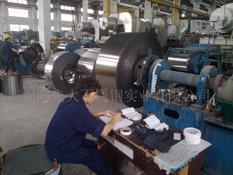 揭阳光大不锈钢实业有限公司是一家集生产和销售各种不锈钢卷材于一体的现代化专业生产企业,公司拥有几十条分条、酸洗、粗扎、精扎、光亮退火生产线,专业生产加工400系列不锈钢卷带,产品各方面性能稳定,并在拉伸性能方面具备较大的竞争优势,同时在制管方面也得到广泛地运用,公司技术力量雄厚,生产设备先进,管理与检测制度严谨,公司目前主要产品材质有410,430,409等,产品均采用优质原材料精扎而成。