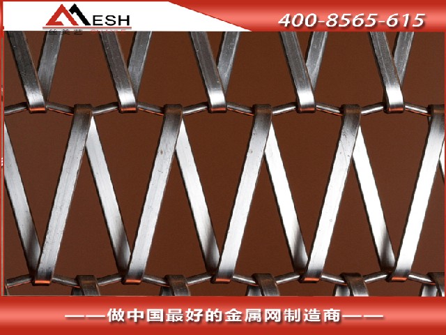 扁丝螺旋网带式金属装饰网SL-A2532BB采用优质不锈钢为原材料,螺旋链接悬挂式的网带式编织结构,使装饰墙面更富动感。表面可直接使用不锈钢原色,也可经过烤漆处理成各种富有金属色泽的颜色。本产品具有高强度、坚固、易于维护的特点,功能性强,装饰效果生动、强烈,并能很好的对建筑结构物起保护作用。其安装简便,快捷,外形别致,典雅。不同的光线,不同的环境,不同的时间段,不同的观赏角度均可制造出各种不同的另样视觉效果。应用于建筑物立面幕墙装饰,高档场所墙面装饰,隔断,屏风等,彰显典雅气质,非凡个性,高贵品位。