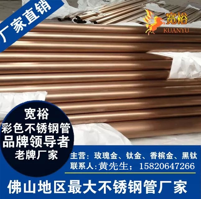 欢迎广大客户销售垂询 不锈钢方通电镀古铜色 玫瑰金 茶色 彩色不锈钢颜色有钛黑(黑钛)、天蓝、钛金、宝石蓝、咖啡色、茶色、紫色、红古铜、青古铜,香槟金,玫瑰金、紫红、钛白、翠绿、绿色等;耐热性:在沸水中浸渍28天,在200℃以下暴露五个星期,在250℃以下长期暴露,加热到400℃,膜层色泽均无明显变化;耐磨性和抗刻划性能:能随在500g/cm2的压强下,橡皮摩擦2000次以上不变色,用300g的钢针刻划不划穿;加工性能。