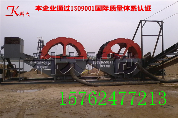 轮式洗砂机是人工砂(包括天然砂)的洗选设备,是制砂生产线,碎石生产线中必不可少的制砂产品。轮式洗砂机可以将制砂机制出的混合砂子洗去微量的石粉和杂质,从而提高砂子的质量。轮式洗砂机系列是一种轮斗式洗选设备,主要用于建筑工地、砂石厂、水电站混凝土大坝工地、邮电电杆厂需单位砂石及铸造用砂、玻璃厂石英砂及油井回填用压力砂的洗选、分级和脱水。轮式洗砂机采用先进技术,结合国内砂石行业实际情况研制的高效洗砂设备,它具有洗净高度,结构合理,处理量大,功率消耗小,洗砂过程中砂子流失少,尤其是轮式洗砂机传动部分均与水、砂隔离,故其故障率大大低于目前常用轮式洗砂机,是国内洗砂行业升级换代的最佳选择。