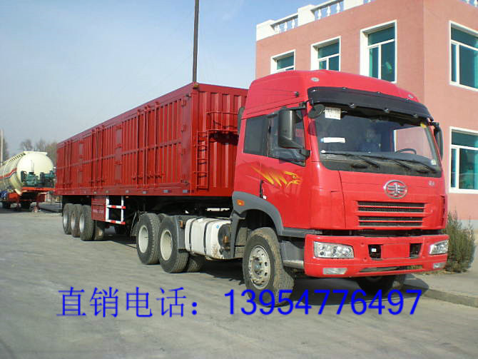 挂车的分类:全挂车或半挂车并无自带的动力装置,它们与牵引汽车组成的汽车列车属于汽车范畴. 半挂车是车轴置于车辆重心(当车辆均匀受载时)后面,并且装有可将水平或垂直力传递到牵引车的联结装置的挂车。即,挂车的总重量一部分由牵引车承受的。其特点:本身无动力,与主车共同承载,依靠主车牵引行驶的车辆。半挂车、牵引杆挂车drawbartrailer 牵引杆挂车是至少有两根轴的挂车,具有:一轴可转向;通过角向移动的牵引杆与牵引车联结;牵引杆可垂直移动,联结到底盘上,因此不能承受任何垂直力。具有隐藏支地架的半挂车也作为牵引杆挂车。客车挂车bustrailer 客车挂车是在其设计和技术特性上用于载运人员及其随身行李的牵引杆挂车。它可按1.2.2和1.2.3装备。 中国重型汽车集团梁山四通专用汽车有限公司生产和出口各种挂车,国内知名品牌,质量保证!欢迎各地新老用户来人来电 ,欢迎前来洽谈.欢迎各地新老用户来人来电 ,欢迎前来洽谈.