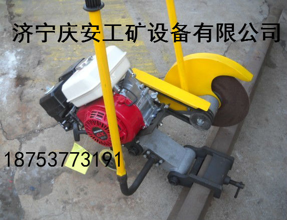 维修与保养1.切轨机保管时要防潮。长期停用要上油密封,装箱保存。2.发动机要定期按发动机说明书进行维修与保养。3.使用一段时间后,要调两皮带中心距,防止皮带松弛。4.每年检查一次机内润滑脂。如发现缺少或污染应添加或更换润滑脂,润滑脂应为1#钙钠基润滑脂。安全操作注意事项1.开机前必须检查发动机与机架螺丝连接情况。皮带松紧度。2.作业前发动机必须空转半分钟待运转平稳无异常现象后再进行作业。3.切削时进给要平稳,以防损坏砂轮。4.作业时要配戴防护镜,身体左侧位,避免火花烧伤。5.切轨时要放慢切削速度,以防损坏砂轮。6.切削完成后,必须关闭发动机,再卸机下道。7.维修,保养或更换零部件必须关闭发动机。8.如有发动机或主轴发现异常,立即停止工作,不要自行拆卸本济宁市庆安工矿设备有限公司可根据具体情况派专业人员考虑维修或更换