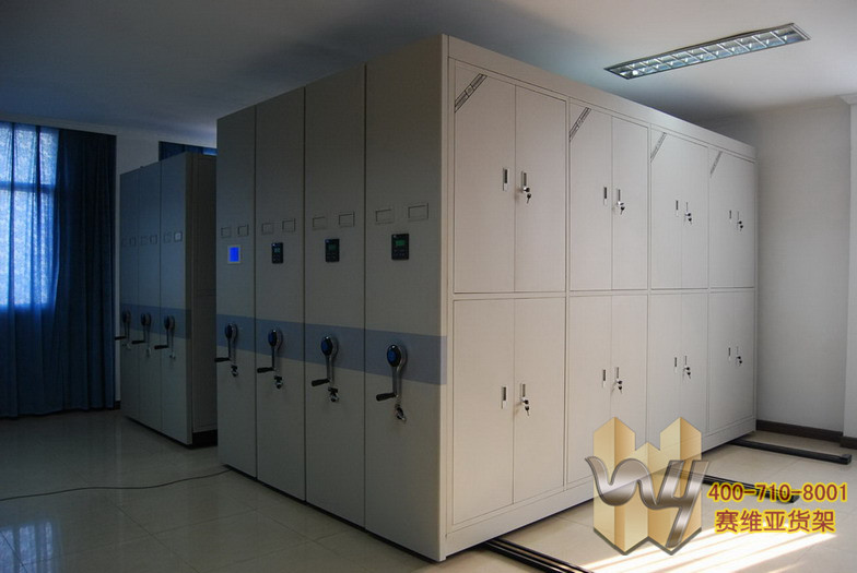 移动式货架又能称为密集架或者轻型密集柜。移动式货架下有导轨,可通过动手或者电动的方式移动货架,从而达到节约密集架的占地面积,是属于空间利用率最高的一种货架。移动式货架其实应该属于文件柜的一个种类,因为移动式货架的承载比较低,而且密封性好,所以移动式货架系统一般都应用在档案室,图书馆等存放文件的场所。