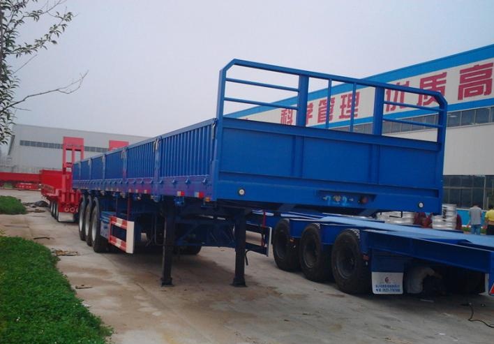 轻量化标载13米半挂车成物流运输主力军高强度轻型半挂车1.随着国家治理超载力度的加大和计重收费政策的实施,如何提高车辆的运载能力是生产厂家及客户迫切需要解决的问题;我公司进口瑞典SSAB高强度钢所生产的半挂车,自重轻,强度好,多拉货;解决了这一问题。其特点及优势如下:a.高强度钢的抗拉强度是普通锰钢的二倍多,在强度不变的情况下,高强度钢半挂车比普通钢轻型半挂车自重轻1吨;b.使用SSAB高强度钢,减少了车辆维修成本,提高了车辆使用寿命;c.随着车辆自重的减轻,车辆油耗减少;d.车辆路途罚款减少,提高载货量,增加客户的运输利润;2.高强度钢半挂车比普通碳钢轻型半挂车自重更轻。使用SSAB高强度钢,对半挂车进行优化设计,在不改变半挂车承载量的情况下,半挂车的自重降低。采用进口刚强度钢材配置:纵梁高度500mm,上翼板8mm,下翼板10mm,腹板5mm,边梁14#槽钢,底板2.0mm平板板,贯穿梁w型折弯件,2个工具箱,2个备胎架,富华13T车桥叁根,铝合金9.00钢圈12只,4双2单气室。