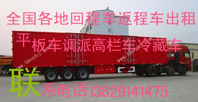 公司主要经营:大小货车出租、回程车调度、空车配货、货物运输、平板车出租、高栏车出租、低栏车出租、厂房搬迁、大件运输、特种运输、整车运输、专车运输等各种货物运输。欢迎新老顾客来电来人。 以诚信铸就品牌,以卓越引导成功,以服务创造辉煌。国内陆运资源整合者,专注回程车供应,提供 佛山、广州、中山、深圳、东莞、惠州、江门、清远、云浮、肇庆、珠海(珠全境)到各地回程车调派服务及货物运输服务。专注更专业!因为专业所以放心。