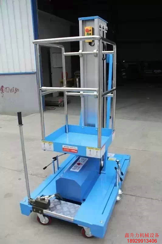 ①单组高强度铝合金桅柱升降,整机重量轻,机动性好,适合单人操作;