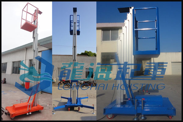 (4)采用高强度铝合金型材制造而成,单桅铝合金升降机轻便灵活;