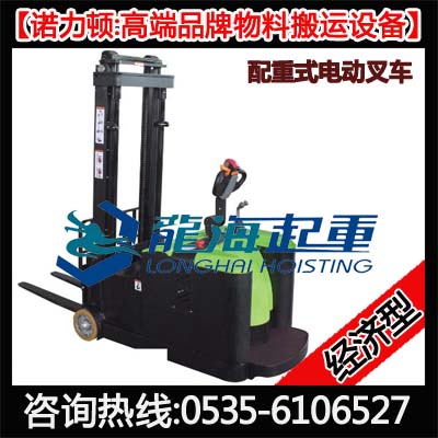 配重式电动叉车,又称平衡重式电动叉车、配重式电动堆高叉车,是烟台开发区龙海起重工具有限公司自主品牌“诺力顿”——高端品牌物料搬运设备。本产品属于经济型平衡重式电动叉车,是对成件托盘货物进行装卸、堆垛和短距离运输、重物搬运作业的轮式搬运车辆。
