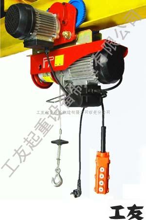 工友起重设备制造有限公司设计生产的微型电动葫芦适用于各种场合,可提升1000公斤以下的货物,特别适用于高层楼房从楼下吊起较重的物品。结构简单、安装方便、小巧玲珑,且用单向电作为动力源。微型电动葫芦在生产设计方面均达到了国际标准,保证了使用的安全性,电机散热片采用铸铁结构,提高了使用寿命。微型电动葫芦提升速度可以达到10米/分,钢丝绳长初设计为12米(加长可定做),在吊钩方面,特别设计了先进的双钩设置,极大的增加了微型电动葫芦的起重重量,微型电动葫芦采用220V民用电源,特别适用于日常民用,工业生产线,货运物流等场合。