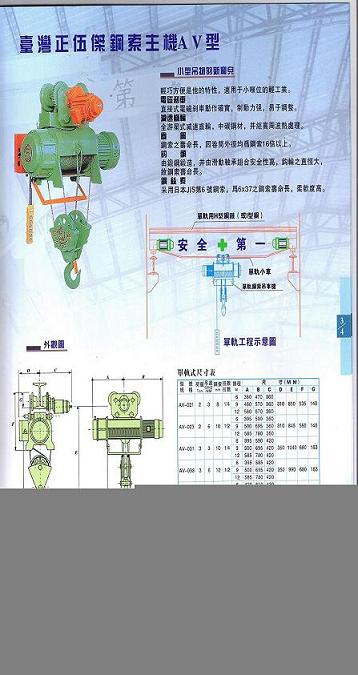 供应台湾正伍杰钢丝电动葫芦AV AW