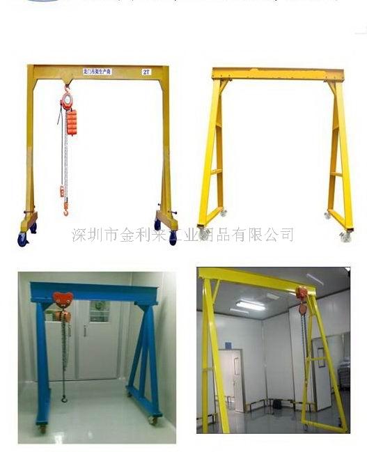 汽车上货物的装卸,汽修车间吊装发动机大件等。起重小龙门架主要有二种规格:一是在地面上全方位移动的龙门架,带刹车承重轮可在地面上移动,适合在地面上起吊物品;二是用钢轨固定安装在楼板面或梁上,通过电动或人力葫芦,实现起重机械化。可减少人力,降低生产运营成本,提高工作效率。龙门架主要采用:10#槽钢做架子,横梁采用16#,20#,25#,30#工字钢