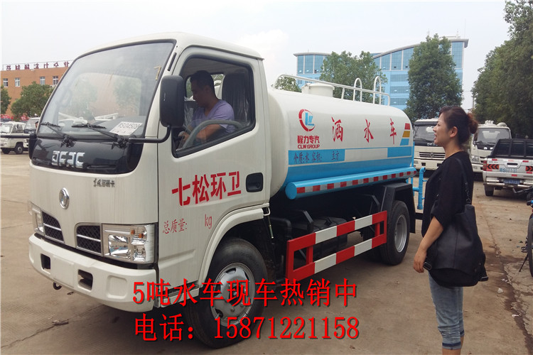 东风锐铃洒水车:又称东风小霸王洒水车:罐体5立方容积厚度4毫米,外形尺寸5995×2000×2300轴距3.3米,东风轻发发动机(可用常柴,锡柴),102匹马力,万里扬5挡变速箱,7.00R16钢丝胎,单排驾驶室,原装动转,气刹制动。程力洒水车适合于各种路面冲洗,树木、绿化带、草坪绿化,道路、厂矿企业施工建设,高空建筑冲洗。具有洒水、压尘、高、低位喷洒,农药喷洒、护栏冲洗等功能,还具有运水、排水,应急消防等功能。湖北程力公司为你提供更多洒水车型号、洒水车图片、洒水车配件、最优的洒水车价格。因装配配置、专用车配件使用不同,使得洒水车价格有所浮动;请立即点击我们的联系方式或给我们在线留言,我们将会为您提供全方位的解决方案!