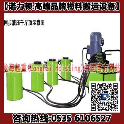 同步千斤顶又称同步液压千斤顶、电动同步液压千斤顶、同步分体式千斤顶。是烟台龙海起重工具有限公司自主品牌“龙升”产品。本产品克服了单个千斤顶顶起重物易发生倾斜,导致起重物损坏并产生危险的缺点,用一台电动泵站使用多顶同步分流阀,连接多台分离式液压千斤顶使用,保持同步起升及下降。保质期12个月。现货供应,可定制!