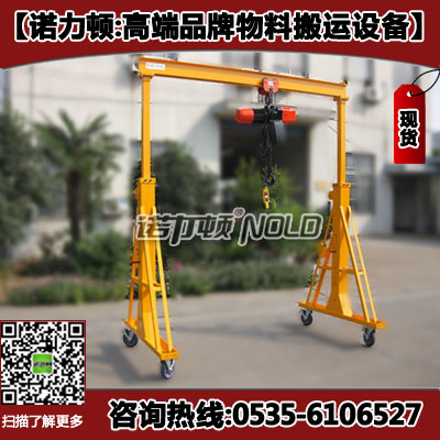 可调式龙门吊架又称龙门吊架、可调式移动龙门吊,是烟台开发区龙海起重工具有限公司自主品牌“诺力顿”——高端品牌物料搬运设备。本产品采用安全系数超过15%的重型设计,龙门吊架的高度可按需调节,保质12个月。现货供应!