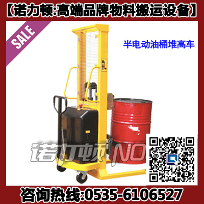 半电动油桶堆高车又称电动油桶升高车、液压油桶堆高车,是烟台开发区龙海起重工具有限公司自主品牌“诺力顿”——高端品牌物料搬运设备。半电动油桶堆高车是多功能鹰嘴式结构,适合油桶的搬运、升高,搬运安全可靠。保质12个月。现货供应!