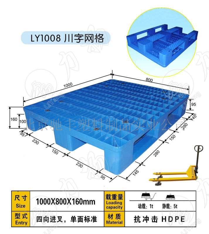 1111田字网格塑料托盘:1100*1100*150mm 塑料托盘动载:0.8T 静载:4T 货载:0.5T