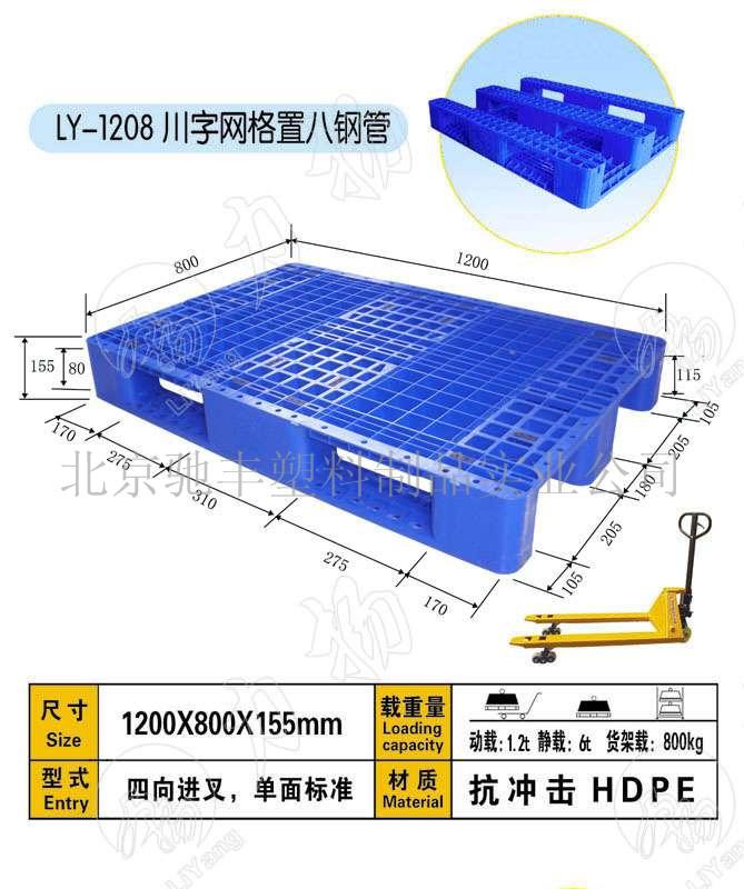 北京塑料托盘有限公司(辽宁大连塑料托盘大连塑料托盘厂)是专业生产塑料托盘的厂家,生产的塑料托盘规格齐全,产品性能高,有100多种规格,川字型塑料托盘: