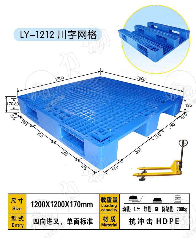 怀柔塑料托盘怀柔仓储塑料托盘厂托盘,提供100多种规格,主要尺寸:塑料托盘厂LY1412SM双面焊接 1400*1200*150 塑料托盘厂LY1515SM双面焊接 1500*1500*150 塑料托盘厂LY1010SM双面网格 1000*1000*150 塑料托盘厂LY1111SM双面网格 1100*1100*150 塑料托盘厂LY1311SM双面网格 1300*1100*150 塑料托盘厂LY1210SM双面网格 1200*1000*150 塑料托盘厂LY1412SM双面网格 1400*1200*150 塑料托盘厂LY1212SM双面网格 1200*1200150 塑料托盘厂LY1210DM川字网格1200*1000*160 塑料托盘厂LY1010DM川字网格1000*1000*160 塑料托盘厂LY1008DM川字网格1000*800*160