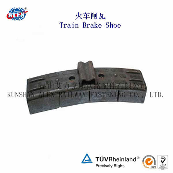 2、合成闸瓦。又称非金属闸瓦,是用石棉及其他填料以树脂或橡胶作为粘合剂混合后热压而成。合成闸瓦中,按其基本成分,分为合成树脂基闸瓦和橡胶基闸瓦。按其摩擦系数高低,可分为高摩擦系数合成闸瓦和低摩擦系数合成闸瓦。合成闸瓦也要用钢背加强。如果闸瓦压制成片状用于盘形制动则称闸片。合成闸瓦于1907年首先在伦敦地铁车辆上使用。50年代以来,应用日益普遍。合成闸瓦重量轻,耐磨,制动时基本上无火花。它与钢轮间的摩擦系数随速度提高的变化小,与轮轨间的制动粘着系数的变化基本一致,从而可以较好地利用粘着作用,改善制动性能和缩短停车制动距离。合成闸瓦有高摩擦系数和低摩擦系数之分。高摩擦系数合成闸瓦的摩擦系数约为铸铁闸瓦的两倍,可使用较小直径的制动缸和副风缸,从而减轻基础制动装置的重量,又能节省压缩空气,优点较多。低摩擦系数合成闸瓦可以直接取代铸铁闸瓦,适合于改造旧车之用。合成闸瓦的缺点是导热性能较差,摩擦所产生的热量使车轮踏面温度升高,甚至使踏面出现局部高温而导致热裂。近年来,为避免对环境的污染,无石棉、无铅等有害物质的合成闸瓦得到越来越多的采用。合成闸瓦具有噪音小,寿命长,对车轮磨损小以及价格相对较低等显著优势