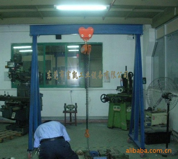 简要说明:移动起吊小龙门架是东莞富凯公司根据中、小工厂(公司)日常生产需要搬运设备、仓库进出货,起吊维修重型设备及材料运输的需要,开发出来的新型小型起重龙门架。适用于制造模具、汽修工厂、矿山、工地及需要起重场合。该移动龙门架最大的优点是可全方位移动性,可快速拆卸安装,占地面积小,用微型汽车就可转移到另一个场地安装使用。宽度、高度可分级调节,钢架构设计合理,能承受从100~5000KG重量。尤其适用于车间设备的安装、搬运、调试。