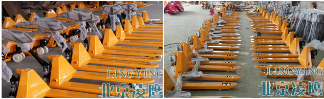 尼龙进入滚子和退出滚子减轻了操作工的力,并有保护了负荷的轮子和货叉;带手动缓降控制阀的密封式油泵高性能型材钢和的货叉; 上升、下降、移动三种位置调节手柄; 各活动处都加入润滑油。