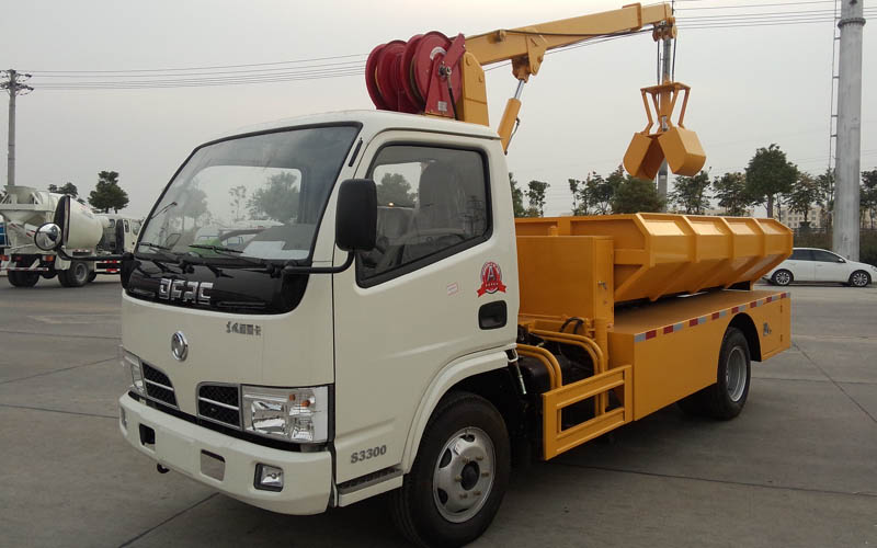 整车标准配置:淤泥清淤车整体采用二类底盘改装,上装配有主臂升降、主臂旋转、抓斗抓放、绳管卷绕、翻斗升降、车身支承等装置。所有专用装置均由本车发动机提供动力,经取力器驱动油泵、油压马达、油缸、阀门等液压传动系统,单人轻松操作手柄,实现机械化掏挖、提取、装车、卸载窨井污物的全部工作任务。