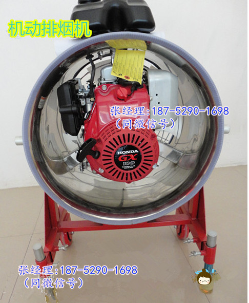 机动排烟机, 功率3.5HP发动机HONDA GX100, 排烟量9000-12000(m3/h), 风筒最大倾角11°+/-2°, 重量26KG, 外形尺寸650×430×830mm
