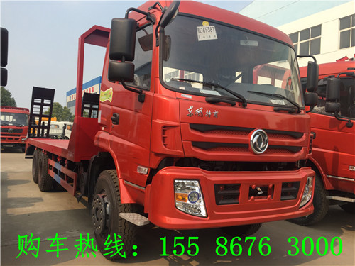 东风双后桥15-30吨工程机械平板运输车(上户吨位11吨)车子主要配置有:采用eq1208kb3gj底盘,康明斯210马力带增压方向助力,10.00-20轮胎,整车长度9.65米,宽2.5米(可伸缩至2.8-3米),板长7.2米,可以15-30吨挖掘机 钩钉机 收割机。
