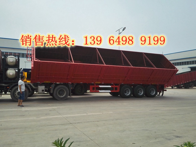 该车为集装箱平板式侧翻自卸半挂车外形尺寸为11-12-13x2.5x1.5米,可以上户