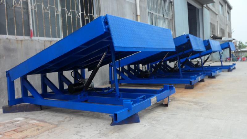 现代装卸货平台通常安装有货台高度调节板,货台高度调节板是工业物流搬运与装卸的辅助设备之一。通常(嵌入)安装于装卸货码头站台中,起到调节装卸货码头与运输卡车之间的高度差和间隙。保障搬运工具(如机动叉车或手动液压托盘搬运车)能够畅通无阻地出入卡车车厢进行物料的装卸搬运工作。大大的提高了进出货的工作效率,降低了装卸成本。登车桥是实现货物快速装卸的专用设备,它的高度调节使货车与库房的货台之间架起一座桥梁,叉车等搬运车辆通过它直接进入货车内部进行货物的批量装卸,仅需单人作业,即可实现货物的快速装卸。它使企业减少大量的劳力,提高工作效应,获取更大的经济效益。