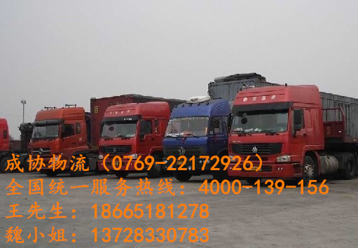 东莞市成协物流公司有各种车型卡车300多辆车...有危险品运输资质和危险品运输车80余辆.有大件运输车辆40余辆,能够承接东莞至全国各大中城市的普通货物运输.大件运输..危险品货物运输.槽罐车运输,直达上海,江苏,浙江,昆山,兰州,银川,西安,贵阳,呼和浩特,乌鲁木齐,合肥,赣州,郑州,杭州,北京?,天津,温州,,,石家庄,成都,重庆等地,优惠.服务到位是我们公司的宗旨!
