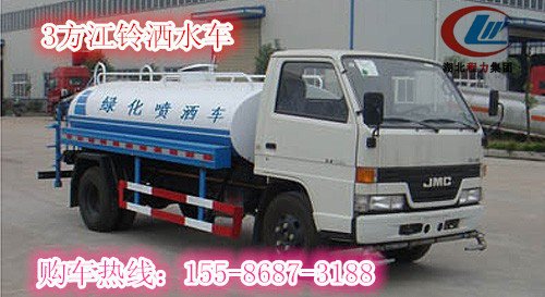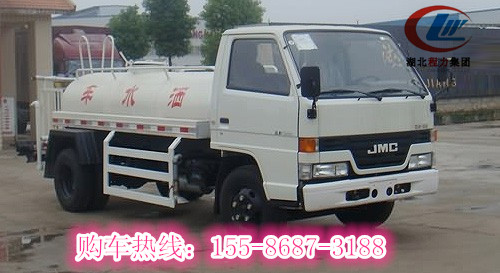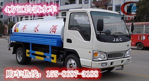 罐体材质为Q235国标碳钢,厚度为4MM,带大功率专用洒水泵,前冲、侧喷、后洒,带后工作平台和洒水高炮,自流阀及消防接头各一个,水管三米2根。